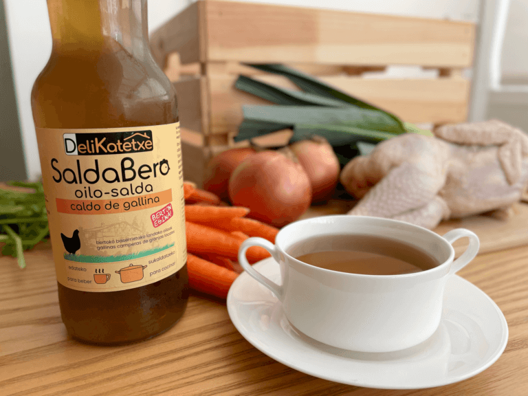 DeliKatetxe tiene un sistema propio para elaborar caldos: “lo desgrasamos de forma natural, como se haría en una cocina de casa. De esta manera, los hacemos clarificados: no tienen grasa batida y son muy claritos, traslúcidos”, subraya Edurne García Arrieta. Esto llamó la atención de varias marcas y, ahora, produce también caldo para terceros. En marzo, va a distribuir con la marca de Eroski Seleqtia dos referencias: consomé de gallina y consomé de carne. Este es un producto esterilizado, en vez de pasteurizado, que se vende en seco, lo que supone una ventaja en la distribución por no necesitar frío para su conservación. El consomé ha sido elaborado, durante este último año, dentro del proyecto Straight2Market de EIT Food, la mayor comunidad europea de innovación en el sector agroalimentario.