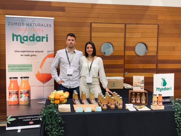Zumos Madari nació hace dos años como un proyecto de Anais Díez y Jonatan Vázquez, dos jóvenes que abrieron una tienda en el Casco Viejo de Bilbao para vender ‘smoothies’ y zumos naturales hechos al momento. Vista la buena acogida, los emprendedores decidieron crear su propio obrador ubicado en Basauri, para poder embotellarlos y distribuirlos más fácilmente. Hoy en día sus bebidas ya llegan a toda la Península y a Baleares mediante su tienda online a través de la plataforma Eup!. Principalmente, sus clientes se dedican al sector HORECA (hoteles, restaurantes y cafeterías).