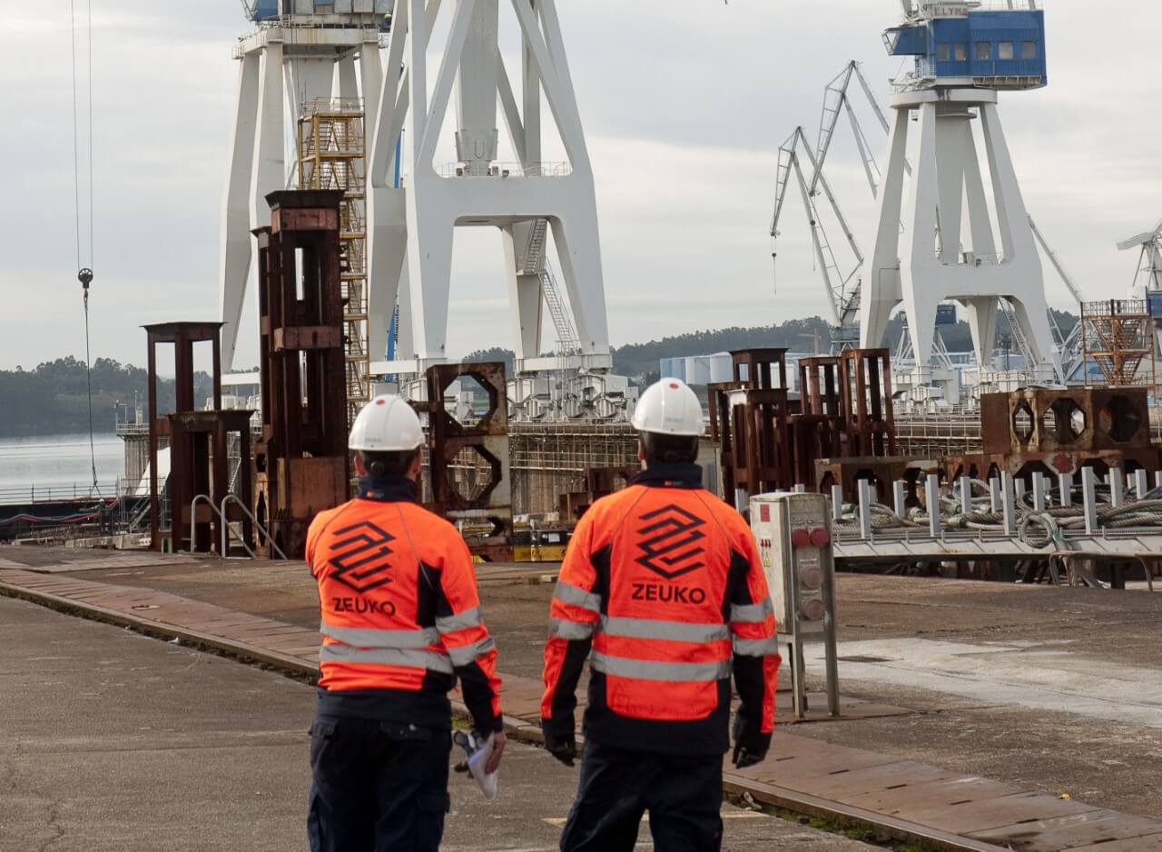 Operarios de Zeuko supervisan las grúas de una instalación portuaria.